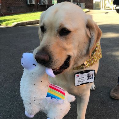 Dr Herbie was bred by Guide Dogs NSW and puppy-raised at Frank Baxter Detention Centre (NSW). He completed the Guide Dogs NSW program with a qualification in Animal Assisted Therapy (one level below a service Guide Dog). Dr Herbie is proud of the career choice not to be a fully pledged service dog but instead focus on being a therapist, as this gives him far greater reward and creative expression in working with young people, adults and groups as well as professional colleagues.